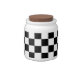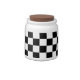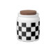 White Porcelain candy jar with an image of a black and white checkerboard resembling a black and white checkered racing flag. See matching espresso cup, flask, mug, pitcher, paper plate and teapot. See the entire Father’s Day Candy Jar collection in the FOOD/BEV | Dishes section.