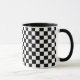 A classic checkered pattern decorates this coffee mug. The design is from original art.