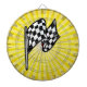Checkered Flag; yellow Dartboard With Darts
