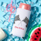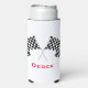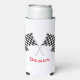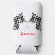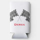 Checkered Flags Design Seltzer Can Cooler with customizable text and background color.