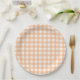 Checkered Gingham Check Plaid Pattern Peach Paper Plates