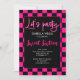 Checkered hot pink black retro Lets party Sweet 16 Invitation