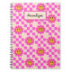 Checkered Hot Pink Smiling Flowers Personalized Notebook