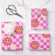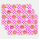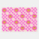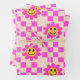 Checkered Hot Pink Smiling Flowers with squares Wrapping Paper Sheets