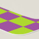 Abstract digital art of lime green and purple colored squares in a checkered formation.