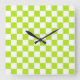 Checkered Lime Green and White Square Wall Clock