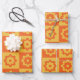Checkered Orange and Yellow Retro Flowers pattern Wrapping Paper Sheets