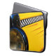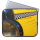 This cool photograph of an antique checkered cab will add color and a bit of history to any space or product!
