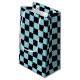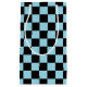 Abstract digital art of pastel blue and black squares in a checkered formation.