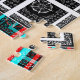 Checkered Pattern: The alternating red and cyan lines in the border, combined with the black and white squares in the center, create a visually engaging checkered motif. The repetition and layering add to the complexity.
