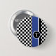 checkered pattern with blue stripe pinback button