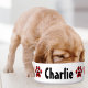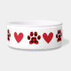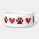 Name and cute red checkered paw prints with red hearts, pet dog food ceramic bowl. Customize it with your furry friend's name!