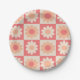 Checkered Peach Fuzz Retro Flowers Pattern Paper Plates