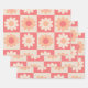 Checkered Peach Fuzz Retro Flowers Pattern Wrapping Paper Sheets