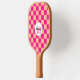 Checkered peach hot pink geometric retro Monogram Pickleball Paddle