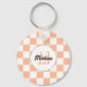 Checkered peach white geometric retro Monogram keychain. Accessories gift for her. Cool retro checkered geometric square pattern. Vintage tile peach white modern checker. Personalize with your custom initial and name.