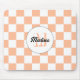 Checkered peach white geometric retro Monogram Mouse Pad. Checkered squares geometric retro pattern gift for her. Cool retro checkered geometric square pattern. Vintage tile peach white modern checker. Personalize with your custom initial and name.