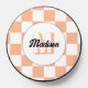Checkered peach white geometric retro Monogram Phone Grip. Phone Case Accessories gift for her. Cool retro checkered geometric square pattern. Vintage tile peach white modern checker. Personalize with your custom initial and name.
