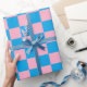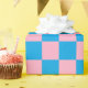 Abstract digital art of pink and turquoise squares in a checkered formation.