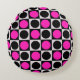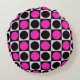 Checkered Pink Black Circle Pattern Design Round Pillow