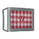 Checkered Plaid Red and White Rectangular Belt Buckle