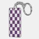 Checkered Purple and White Keychain