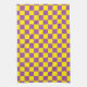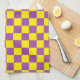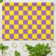 Abstract digital art of purple and yellow squares in a checkered formation.