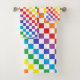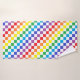 Abstract digital art of white and rainbow colored squares in a checkered formation.