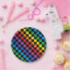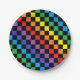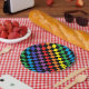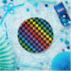 Abstract digital art of black and rainbow colored squares in a checkered formation.