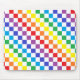 Abstract digital art of white and rainbow colored squares in a checkered formation.