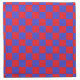 Abstract digital art of red and blue squares in a checkered formation.