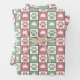 Checkered Red and Green paw print Christmas Tree Wrapping Paper Sheets