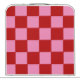 Abstract digital art of red and hot pink squares in a checkered formation. With the ability to change the pink squares by changing the background color to match the red squares.