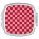 Abstract digital art of red and hot pink squares in a checkered formation. With the ability to change the pink squares by changing the background color to match the red squares.