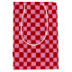 Abstract digital art of red and hot pink squares in a checkered formation. With the ability to change the pink squares by changing the background color to match the red squares.