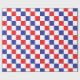 Abstract digital art of red and blue color squares in a checkered formation with white in the alternating squares.