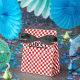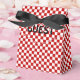 Checkered Red-white-Tent Style Favor Box-The favor box is covered with the allover background pattern of small red and white squares. On the flap is two text areas for you to personalize if you like. The top text is black, underneath is the same text in white. The text reads: GUEST. Edit both text areas to say the same thing. Delete the text if it's not wanted. This pattern coordinates with the Pizza Party and Chef Italiano gifts in my stores galleries. Coordinating party supplies is available.