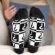 This fun Halloween socks are bright and colorful. The small print is crisp and shows the fun details. The softness of the socks feels nice on my feet and ankles. .