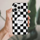 Checkered squares black and white retro Monogram iPhone Case. Personalize with your custom initial and name.