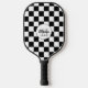 Checkered squares black and white retro Monogram Pickleball Paddle. Personalize with your custom initial and name.