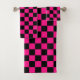 Checkered squares hot pink black geometric retro pattern Home Bathroom Bath Towel gift for her. Cool retro checkered geometric square pattern. Vintage tile black and hot pink modern checker.