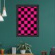 Checkered squares hot pink black geometric retro framed art