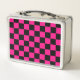 Checkered squares hot pink black geometric retro pattern Lunch Box gift for her school or job. Cool retro checkered geometric square pattern. Vintage tile black and hot pink modern checker.