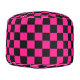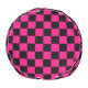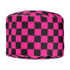 Girly Home Décor Round Pouf for girls room. Checkered squares hot pink black geometric retro pattern gift for her. Cool retro checkered geometric square pattern. Vintage tile black and hot pink modern checker.