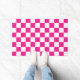 Checkered squares hot pink white geometric retro pattern Doormat. Outdoor Home Décor gift for her. Cool retro checkered geometric square pattern. Vintage tile white and hot pink modern checker.