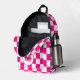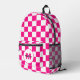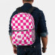 Checkered squares hot pink white geometry Monogram Printed Backpack. Cool fashion accessory bag for her. Cool retro checkered geometric square pattern. Vintage tile white and hot pink modern checker. Create a unique and personalized backpack with a custom touch! Modern monogram with your initial and your name for that extra personal flair.
