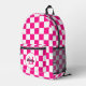 Checkered squares hot pink white geometry Monogram Printed Backpack. Cool fashion accessory bag for her. Cool retro checkered geometric square pattern. Vintage tile white and hot pink modern checker. Create a unique and personalized backpack with a custom touch! Modern monogram with your initial and your name for that extra personal flair.