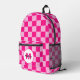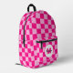 Checkered squares hot pink light pink geometry Monogram Printed Backpack. Cool fashion accessory bag for her. Cool retro checkered geometric square pattern. Vintage tile hot pink modern checker. Create a unique and personalized backpack with a custom touch! Modern monogram with your initial and your name for that extra personal flair.