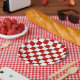 Checkered squares dark red and white geometric retro pattern Party Supplies. Cool retro checkered geometric square pattern. Vintage tile white and red modern checker.