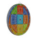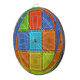 The central portion features a grid or checkerboard pattern composed of squares in red, golden yellow, green, and cyan.